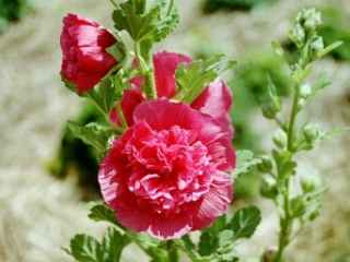 Alcea rosea (Hollyhock) double red © 2001 G. Keena